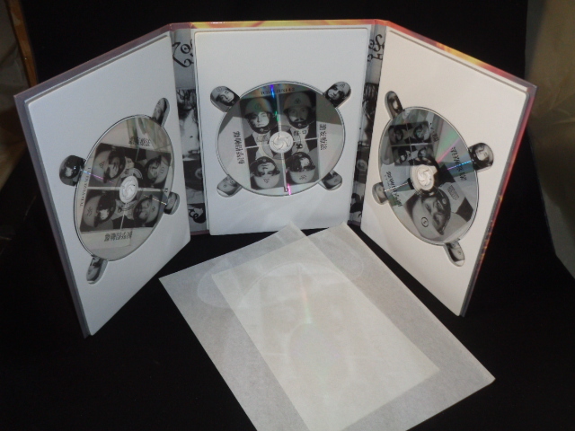 Large deluxe thick glossy hard slip cover with sticker housing a rigid tri-fold glossy slipcase housing the picture CD's.