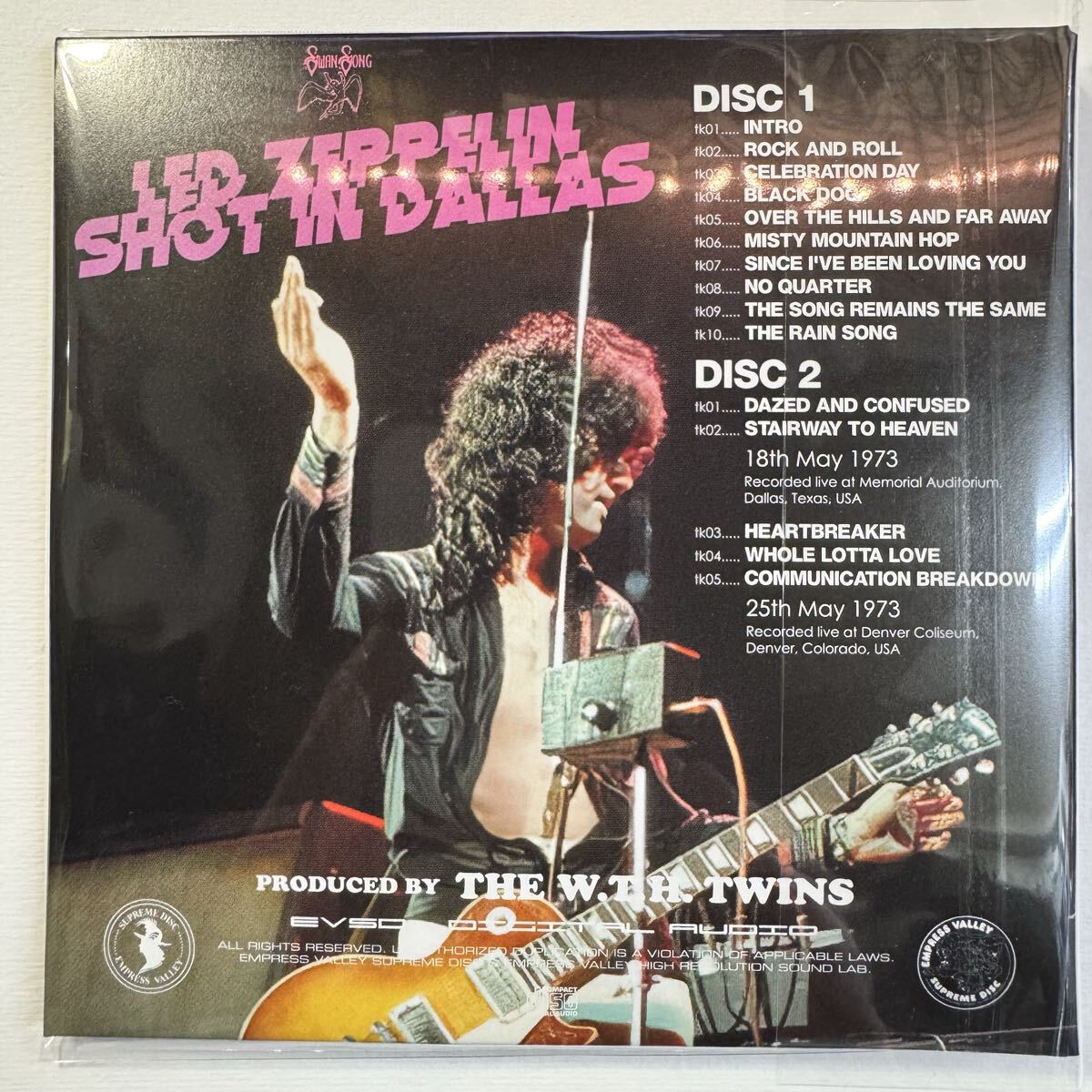 LED ZEPPELIN / SHOT IN DALLAS "Gunshot Reverberation" (2CD) This is the 2025 final remaster of the classic 1973 Dallas concert. All photos from the show are featured on the cover!
