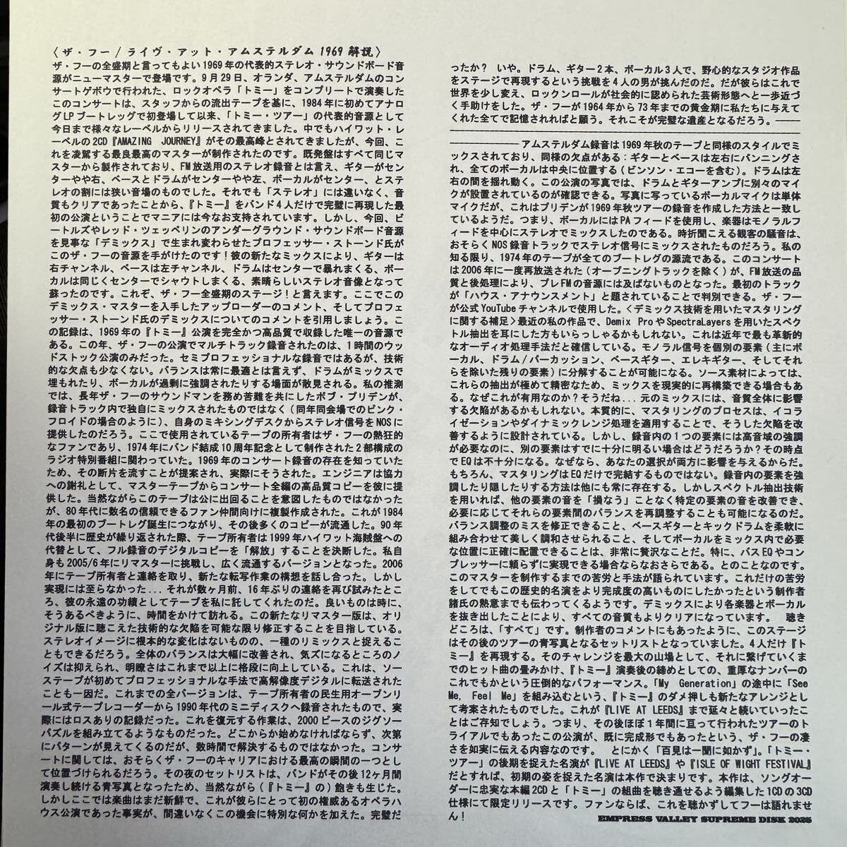 THE WHO / LIVE AT A'DAM "The Heartbeat of Amsterdam" (2CD + TOMMY MEDLEY disc) New transfer from 2025! Demixed & Mastered! The definitive edition!