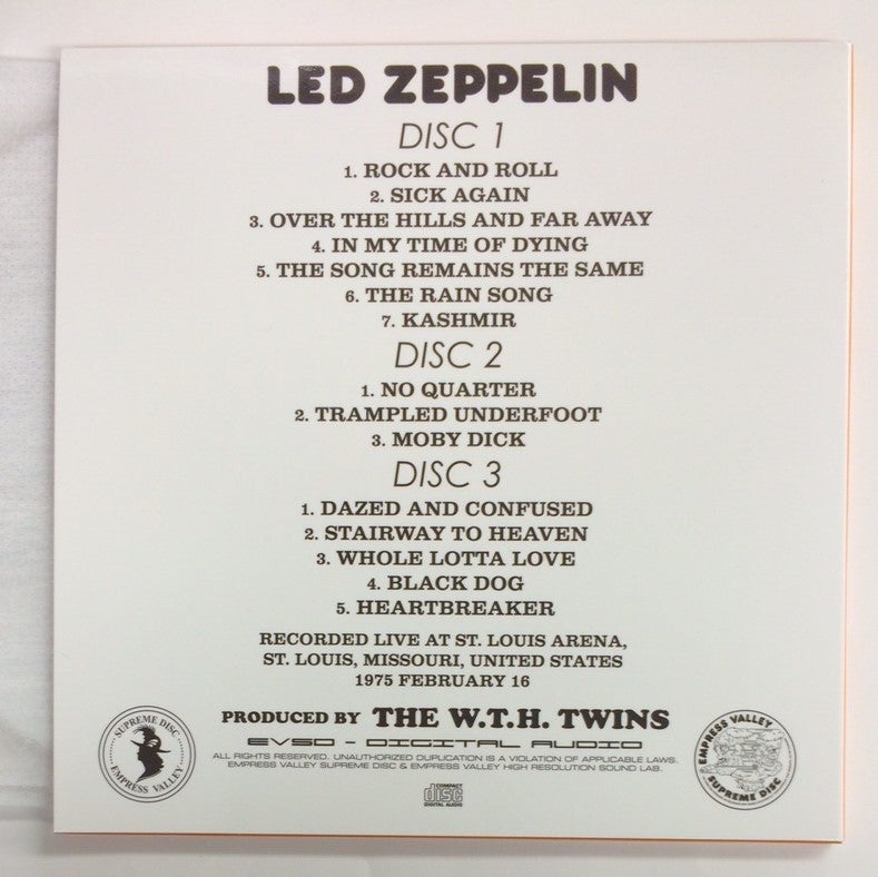 Disc 4-6: Recorded live at Missouri Arena, St. Louis, Missouri, USA February 16th 1975.