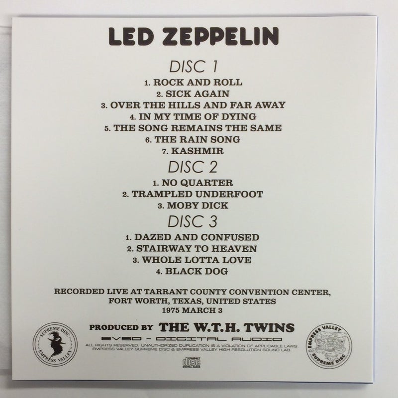Disc 1-3: Recorded live at Tarrant Convention Center, Fort Worth, Texas, USA March 3rd 1975.
