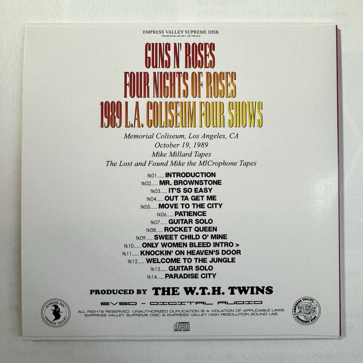 GUNS N’ ROSES - FOUR NIGHTS OF ROSES 1989 LA coliseum 4 shows 6CD BOX SET + 5T-SHIRT [EMPRESS VALLEY]
